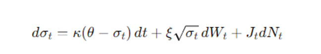 In the LASPR model that I offer, volatility is modeled using a Stochastic Volatility Jump-Diffusion Process, which accounts for mean-reverting behavior while allowing for sudden jumps, a common feature in crypto markets. The volatility process can be expressed as: