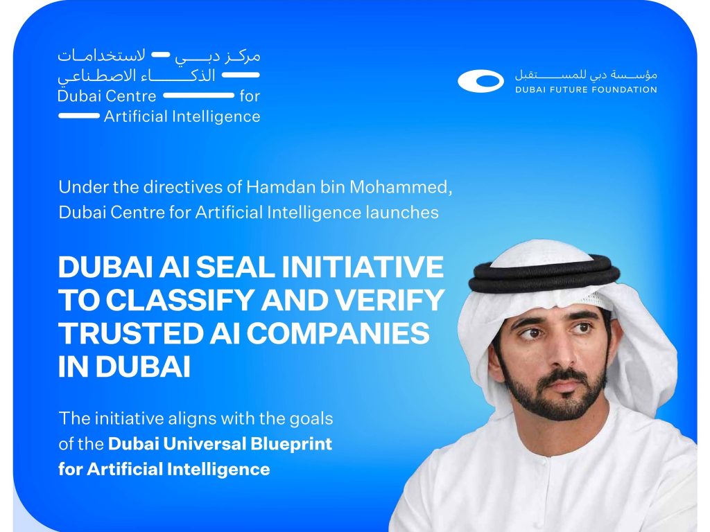 Dubai has introduced the Dubai AI Seal to certify and promote trustworthy artificial intelligence (AI) companies, aiming to strengthen the city’s position as a global AI leader. This initiative, launched by the Dubai Centre for Artificial Intelligence (DCAI), aligns with the Dubai Universal Blueprint for AI and seeks to foster robust partnerships between government entities and technology firms.