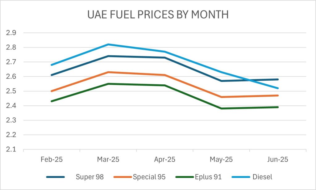 Here’s a month-by-month breakdown of UAE fuel prices in 2025: